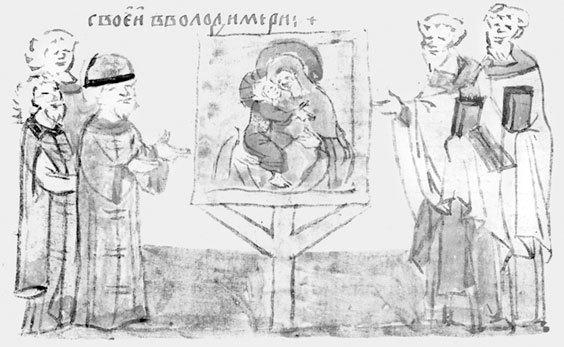 Владимир был сыном воинственного Святослава, киевского князя, который предпринял поход на хазар, господствовавших в Юго-Восточной России, взял их город Саркел на Дону, победил прикавказские народы – ясов и касогов, завоевал Болгарию на Дунае, но должен был после упорной защиты уступить ее греческому императору. На обратном пути из Болгарии в Русь он был убит печенегами, народом тюркского племени. Будучи еще в детском возрасте, Владимир был призван новгородцами на княжение и уехал в Новгород вместе со своим дядей Добрыней, братом его матери Малуши, ключницы его бабки Ольги. После смерти Святослава между его детьми начались усобия. Киевский князь Ярополк убил своего брата, древлянского князя Олега. Владимир со своим дядей убежал в Швецию и возвратился в Новгород с чужеземной ратью. Вражда у них с Ярополком возникла оттого, что дочь полоцкого князя Рогнеда, руки которой просил Владимир, отказала ему такими словами: «Не хочу разуть (разуть жениха – обряд свадебный; «разуть» значит «выйти замуж») сына рабы», – попрекнув его низостью происхождения по матери, и собиралась выходить за Ярополка. Владимир завоевал Полоцк, убил Рогволода, полоцкого князя, и женился насильно на Рогнеде. Вслед за тем он овладел Киевом и убил своего брата Ярополка. Летописец наш изображает вообще Владимира жестоким, кровожадным и женолюбивым; но мы не можем доверять этому, так как по всему видно, что летописец с намерением хочет наложить на Владимира-язычника как можно больше черных красок, чтобы тем ярче указать на чудотворное действие благодати крещения, представить того же князя в самом светлом виде после принятия христианства.