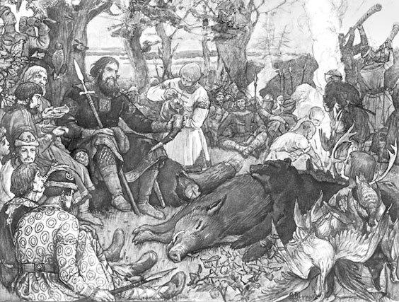 Сохраняя племенную славянскую веселость, Владимир примирял ее с требованиями христианского благочестия. Князь любил пиры и празднества, но пировал не с одними своими боярами, а хотел делиться своими утехами со всем народом – и со старыми и малыми; он отправлял пиршества преимущественно в большие церковные праздники или по случаю освящения церквей (что в то время было памятным событием).