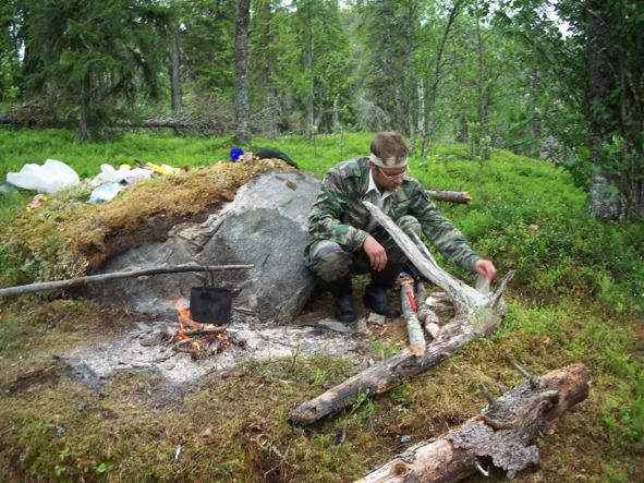 • От обуви и другой снаряги зависит твоё здоровье! Сапоги только на твёрдой подошве, а то нашёл ямку и минут пять стоял на карачках, шипя сквозь зубы от боли в ноге, отделался синяком на лодыжке, спасибо, что урок был, не столь фатален (как растяжение и перелом). И вообще, на стоянку (где палатка) неси резиновые тапочки, сырые сапоги скинешь сушить, а в тапках ходишь. Ну и естественно обязателен накомарник.