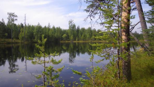 Проехали по лесу (коридор в лесу и 2 колеи от колёс газика) примерно на 5 минут пешего хода. Оставили ласточку (так ласково называет Володя нашу машину «Ниву») и взяв рюкзаки, двинули к озеру. Хотя, как вы понимаете не всё так просто — сперва перекусили на дорожку на перекрёстке, где ветерок отгоняет комаров и мошку. Ели жареную щуку, после собирали рюкзаки и это вам не тру-ля-ля, ведь несёшь всё сам на своём горбу, а значит брать нужно только необходимое. Гм. В итоге перебирал свой рюкзак 2 раза и безжалостно сортировал, отбрасывая всё не нужное, или скажем так, без чего не мог выжить в предстоящем экстриме!