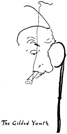 Proudly he advances, trailing Clouds of limelight from afar, (Diffidence is not the failing Of the true dramatic "star"). What cares he for rank or fashion, Politics or place or pelf? He whose one prevailing passion Is himself?