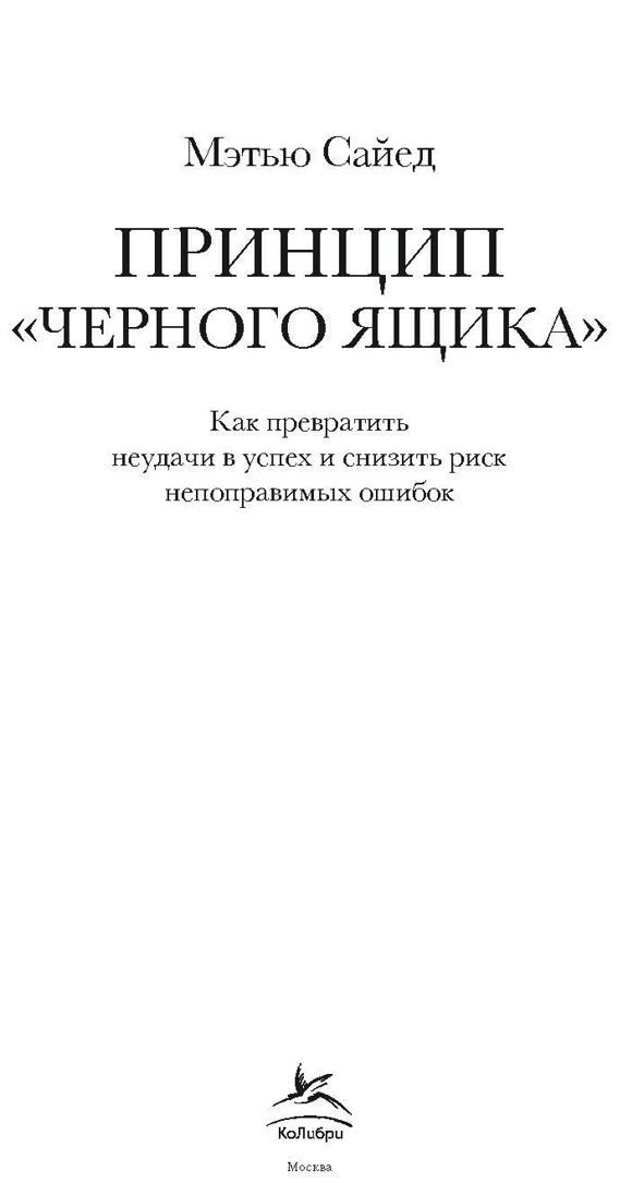 Принцип «черного ящика» : Как превратить неудачи в успех и снизить риск непоправимых ошибок / Мэтью Сайед, пер. с англ. Н. Караева. — М. : КоЛибри, Азбука-Аттикус, 2016.