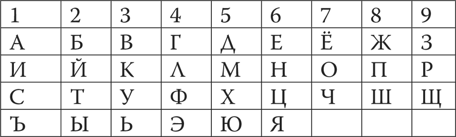 Таблица соответствия букв и чисел[4]