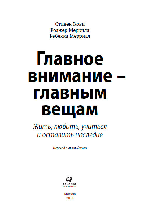Главное внимание — главным вещам: Жить, любить, учиться, оставить наследие / Стивен Кови, Роджер Меррилл, Ребекка Меррилл; Пер. с англ. — М.: Альпина Паблишерз, 2011.