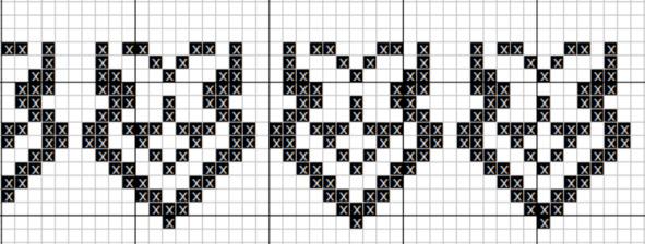 Так сделаны прибавления и убавления на выше показанной схеме каймы с листьями.
