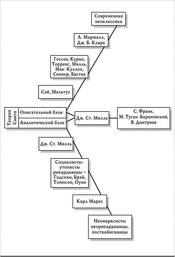 В данной связи известный экономист М. Добб в работе «Теории ценности и распределения после Адама Смита» (1973) выделял «две совершенно различных и соперничающих в экономической мысли XIX в. традиции, объясняющих порядок и способ детерминации феноменов обмена и распределения», восходящих к теории А. Смита.