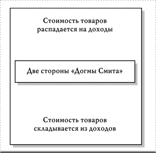 Смешение Смитом результатов исследования годового труда нации ведет к отождествлению им стоимостных структур общественного продукта (включающего в себя как стоимость израсходованных на его производство средств производства, так и вновь созданную стоимость) и национального дохода, в котором представлена только вновь созданная в данном году стоимость. Отсюда проистекает так называемая «догма Смита», состоящая в исключении им из стоимостной структуры товара стоимости израсходованных средств производства и помешавшая ему в исследовании процессов воспроизводства.