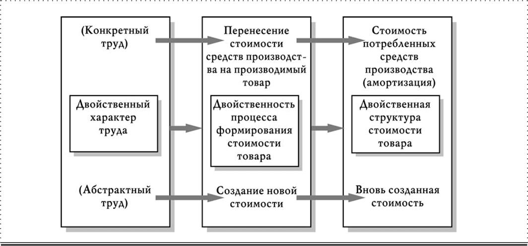 Из схемы видно, что полученная Смитом двойственность результатов годового труда нации отражает в конечном счете двойственную природу труда, а также товара, представляющего собой противоречивое единство потребительной стоимости (полезности) и стоимости.