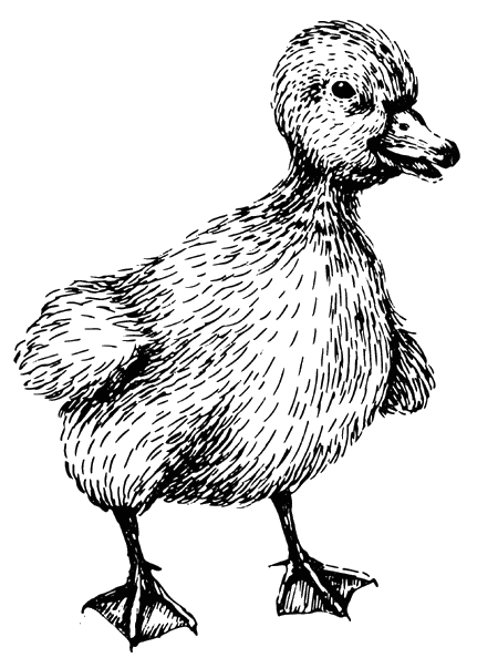 Ну, так вот я и знал! Утка ещё не встала, и голова её ещё была вровень с краем корзины. Все утята спали в тепле под матерью, только один, с перевязанной лапкой, вылез и по перьям матери, как по кирпичикам, взбирался вверх, к ней на спину. Когда Дуся встала, она подняла его высоко, на уровень с краем корзины. По её спине утёнок, как мышь, пробежал до края – и кувырк вниз! Вслед за ним мать тоже вывалилась на пол, и началась обычная утренняя кутерьма: крик, свист на весь дом.