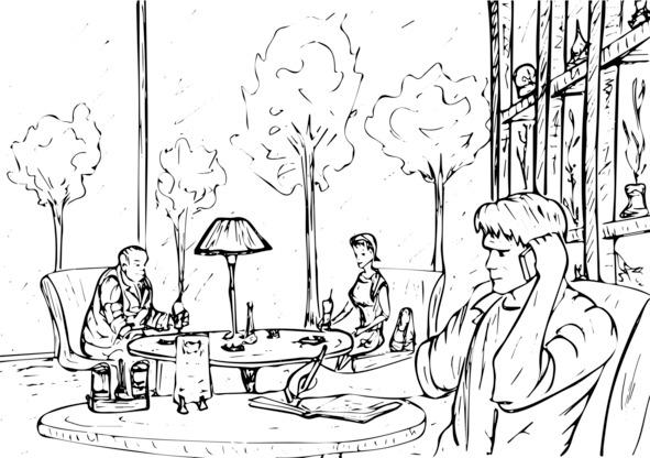 Сергей сидел в кафе, ожидая, когда ему принесут заказанный им чай, и разговаривал по телефону: