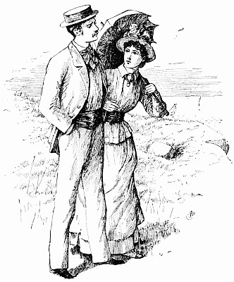 Copplestone Grange stood three miles west of Bideford, and the house to which the Youngs were going was close above Clovelly, so that a distance of some seven miles separated them. To walk this twice for the sake of lunching with a friend would seem to most young Americans too formidable a task to be at all worth while, but to our sturdy English pair it presented no difficulties. On they went, lightly and steadily, Imogen's elastic steps keeping pace easily with her brother's longer tread. There was a good deal of up and down hill to get over with, and whenever they topped a rise, green downs ending in wooded cliffs could be seen to the left, and beyond and below an expanse of white-flecked shimmering sea. A salt wind from the channel blew in their faces, full of coolness and refreshment, and there was no dust.