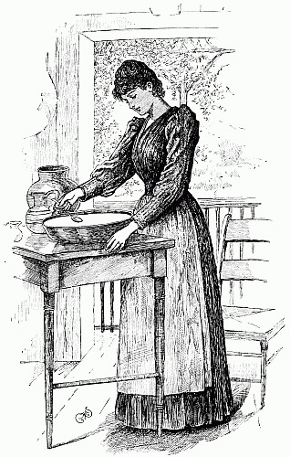 Pretty soon they were all seated at luncheon, a hearty and substantial meal, as befitted the needs of people who had just taken a seven-mile walk. A great round of cold beef stood at one end of the table, a chicken-pie at the other, and there were early peas and potatoes, a huge cherry-tart, a "junket" equally large, strawberries, and various cakes and pastries, meant to be eaten with a smother of that delicacy peculiar to Devonshire, clotted cream. Every body was very hungry, and not much was said till the first rage of appetite was satisfied.
