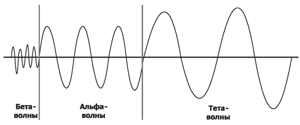 Высота и длительность волны тем больше, чем ниже колебания. Для того, кто хочет уметь оказывать влияние на других людей, наибольший интерес представляют три из этих групп волн: бета-, альфа-и тетаритмы. Примерно эти волны можно изобразить так: