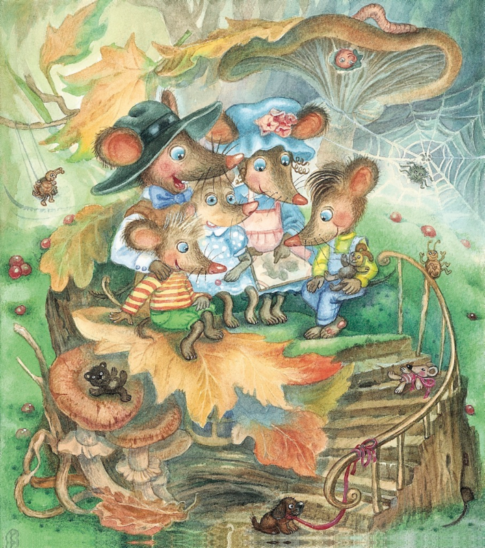 — Дети, идите собирать вещи и дайте папе отдохнуть! Госпожа Куцехвост деловито сновала по летней норе, укладывая и увязывая запасы на зиму. Она была образцовой хозяйкой и во всём любила порядок и красоту. Летние вещи она отнесла в кладовку и аккуратно разложила по местам. Не скоро теперь они понадобятся. Корзинки для ягод, корзинки для грибов, зонт от солнца, детские панамы, надувной кот для плавания — всё это напоминало о счастливых солнечных днях, проведённых в лесу или на озере.