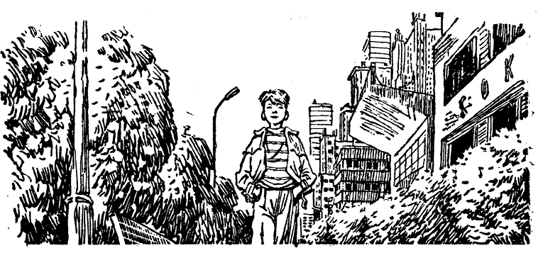 Громов улыбнулся: он никак не мог привыкнуть к этим вертолетам и ездил в обычных такси. Он видел, что город раздался и похорошел. От вокзала ехали мимо километровых цветников, в бесконечном коридоре зеленых деревьев, застывших, как в почетном карауле. Куда ни посмотришь — везде что-то новое: березовая рощица, хоровод стройных сосен, яблони и вишни в белых накидках, цветущая сирень... Сады висели и над головой, на крышах зданий, защищенные от непогоды прозрачными раздвижными куполами. В промежутках между окнами, которые перепоясывали здания блестящими лентами, тоже была зелень: вьющиеся растения цеплялись за камни и бетон.