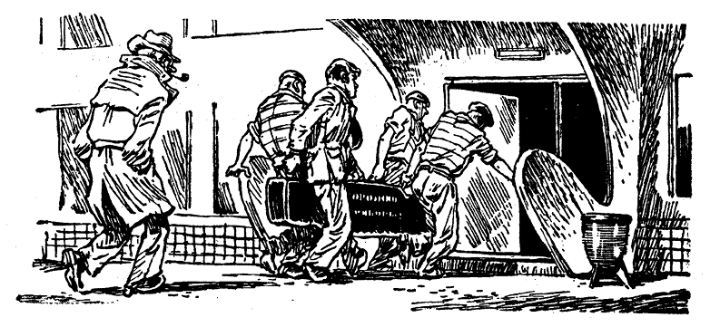Он обхватил чемодан мускулистыми руками и поставил на землю. Лицо его покраснело. Чемодан был длинный, черного цвета, с четырьмя ручками. По форме он напоминал футляр контрабаса. Однако надписи точно определяли содержимое: «Осторожно! Приборы!»