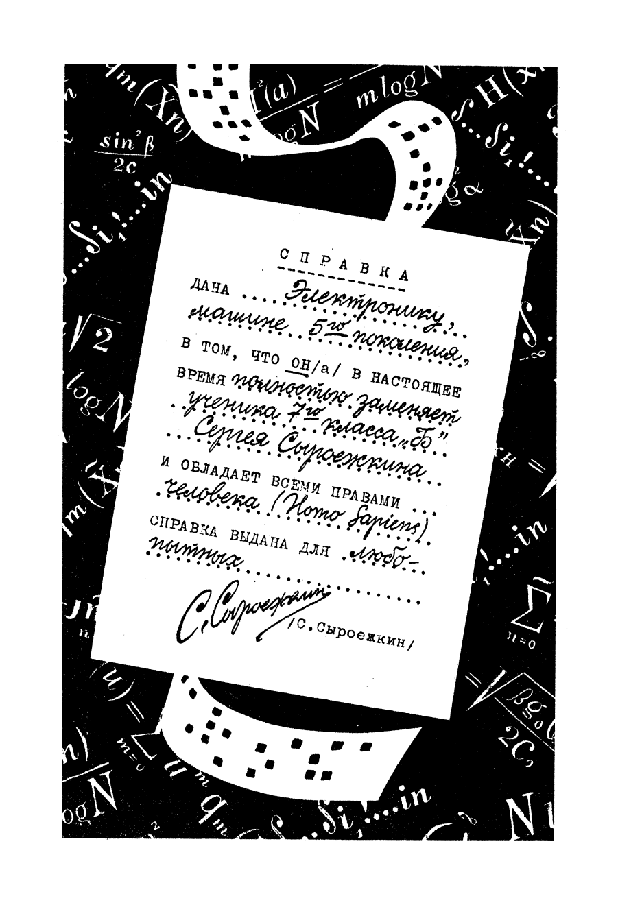 А потом совершенно незаметно страсть к математике испарялась, и Сыроежкина притягивали как магнит двери лабораторий. Выбрав удобный момент, он входил в них вместе с чужим классом, садился в уголке, наблюдал, как возятся с деталями старшие ребята. Поет-гудит песню счетная машина, горят угольки ее глаз, и Сыроежкин чувствует себя хорошо.