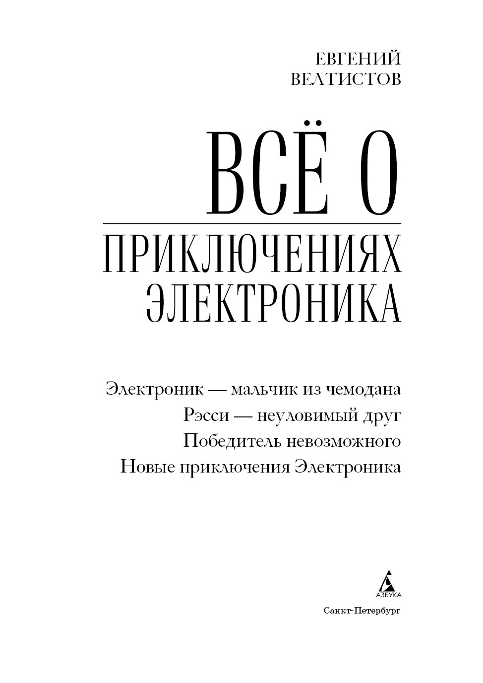 Всё о приключениях Электроника : повести / Евгений Велтистов. — СПб. : Азбука, Азбука-Аттикус, 2023. : ил.