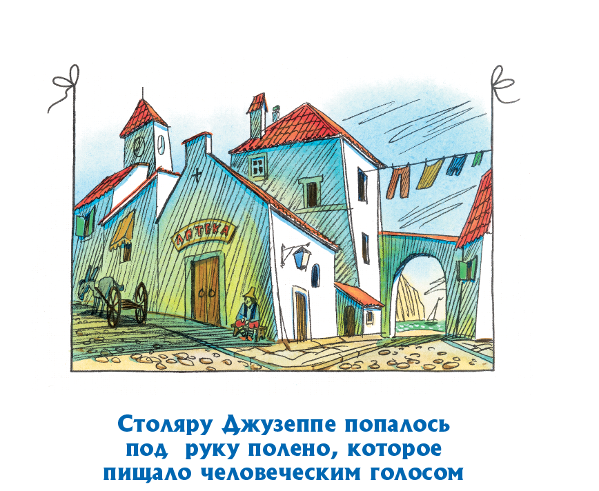 Джузеппе уронил рубанок, попятился и сел прямо на пол: он догадался, что тоненький голосок шёл изнутри полена.