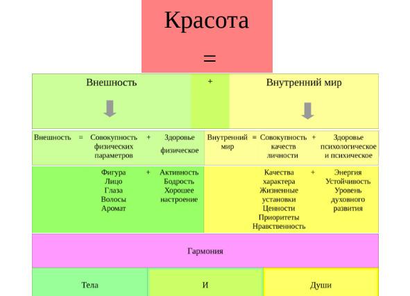 Красота (К.) = Внешность (a) + Внутренний мир (b)