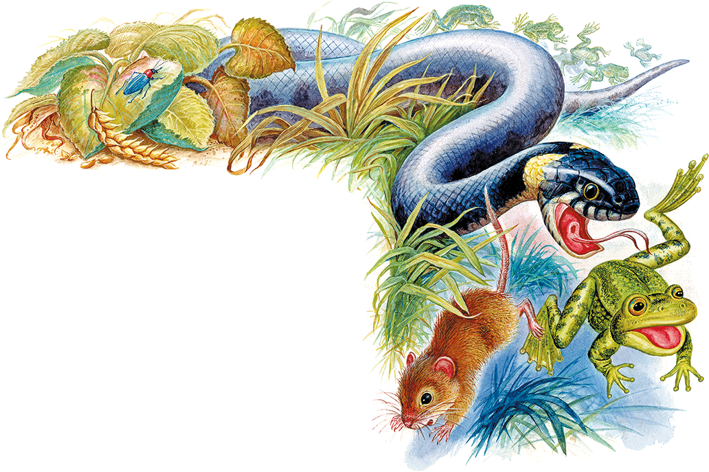 Змея скользнула вниз, и длинные задние ноги лягушонка дрыгнули в её разинутой пасти.