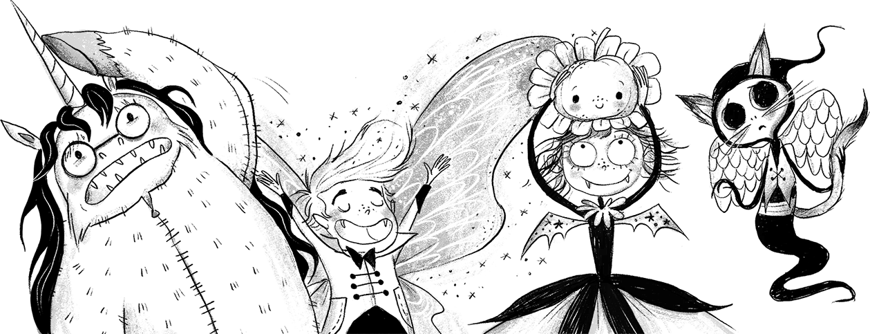 – НУ ПЧМУ Я ДОЛЖНА БЫТЬ ЕДНОРОГОМ? – возмутилась Флоренс, поправляя на лбу рог, пока Смертик озадаченно рассматривал свой хвост котёнка-ангела.