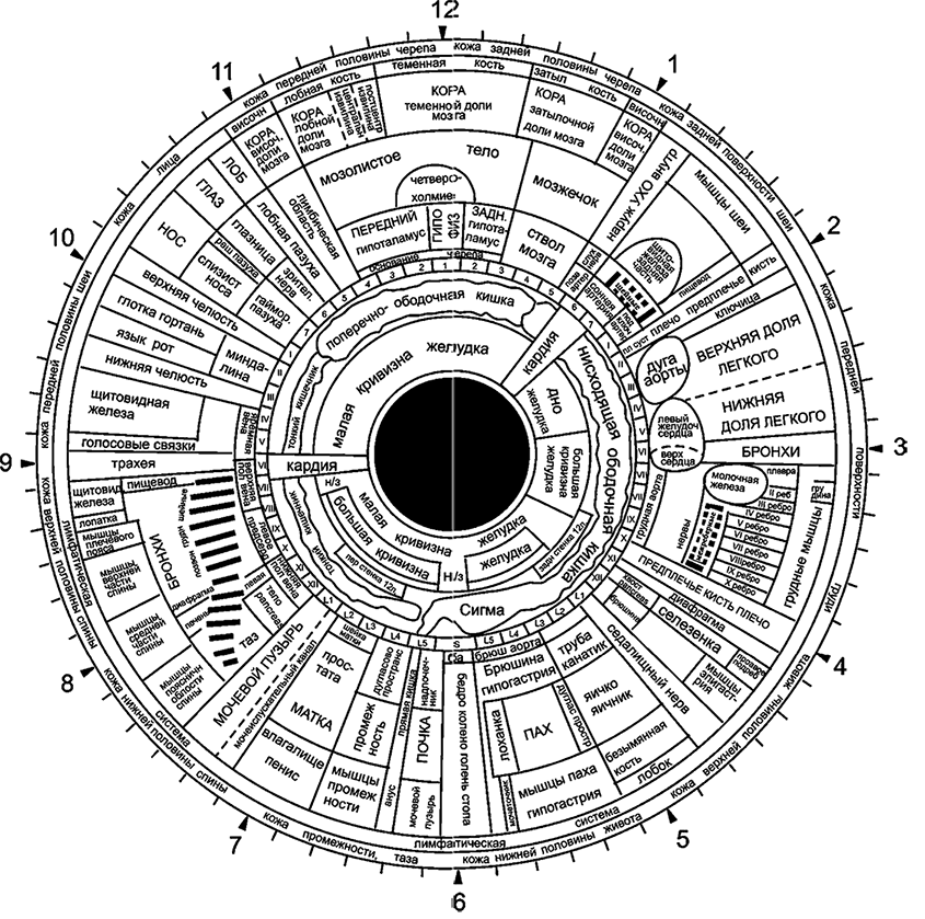 Первыми были открыты в VII в. н. э. проекционные зоны в области ушной раковины, затем в XIX – начале ХХ в. описаны аналогичные зоны в области глаза, носа, языка, кожных покровов. Многие ученые независимо друг от друга установили, что органы и системы человека имеют строго локализованное представительство во всех анализаторах, представляя собой цельную, слаженно действующую систему, отражающую реальную степень здоровья. Ее можно использовать в практической диагностике, оздоровлении и лечении заболеваний, что дает возможность определить ранние признаки болезненных проявлений, памятуя слова известного французского хирурга R. Leriche (1937): «Болезнь – это драма в двух актах, из которых первый разыгрывается в наших тканях при потушенных огнях, в глубокой темноте, даже без намека на болевое ощущение. Лишь во втором акте возникает боль, зажигаются свечи, предвестники пожара, потушить который в одних случаях трудно, в других невозможно».