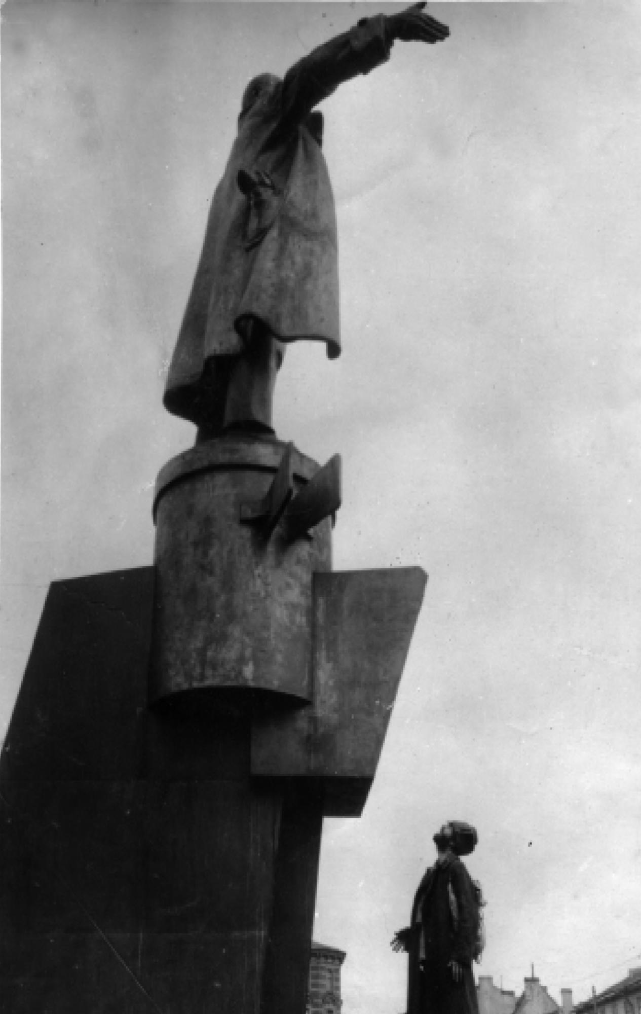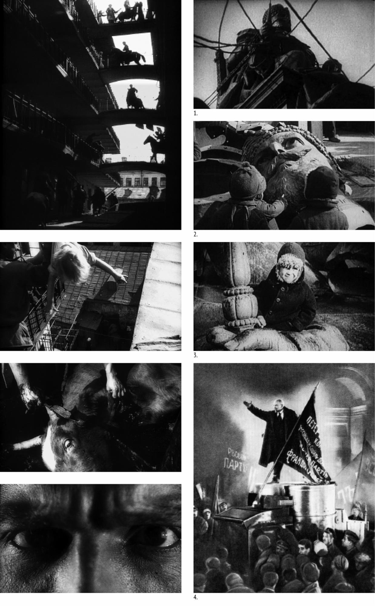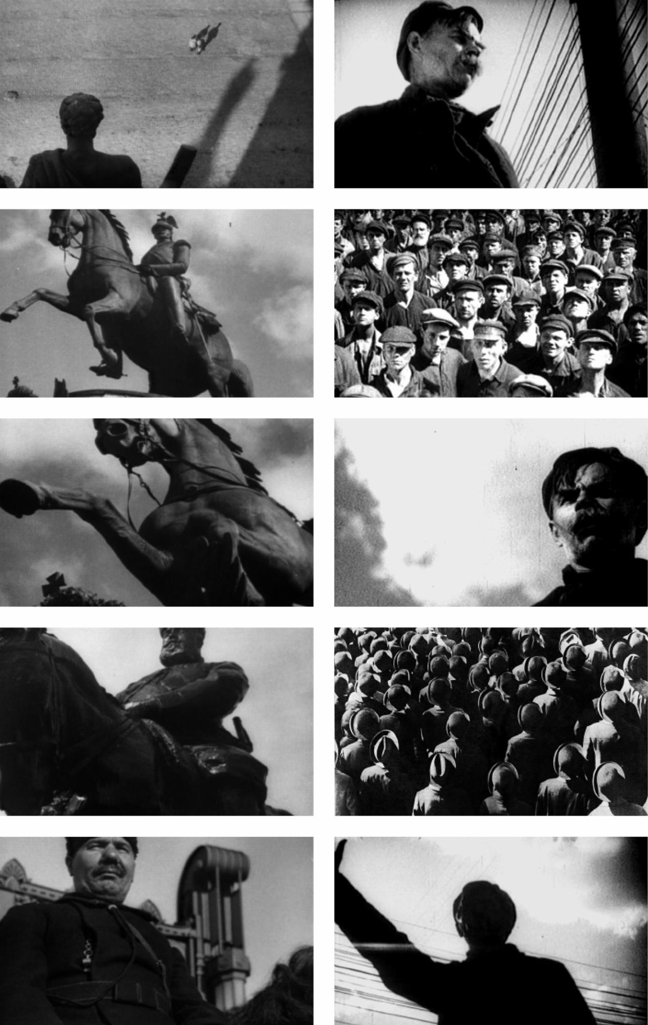 [35] Любопытно, что Эйзенштейн таким образом как бы передоверяет авторство образа, способ его создания непосредственно массовому сознанию. Кадр Ленина на броневике есть, по сути, цитата — отсыл к уже воздвигнутому ко времени съемок памятнику Ленину на той же площади у Финляндского вокзала.