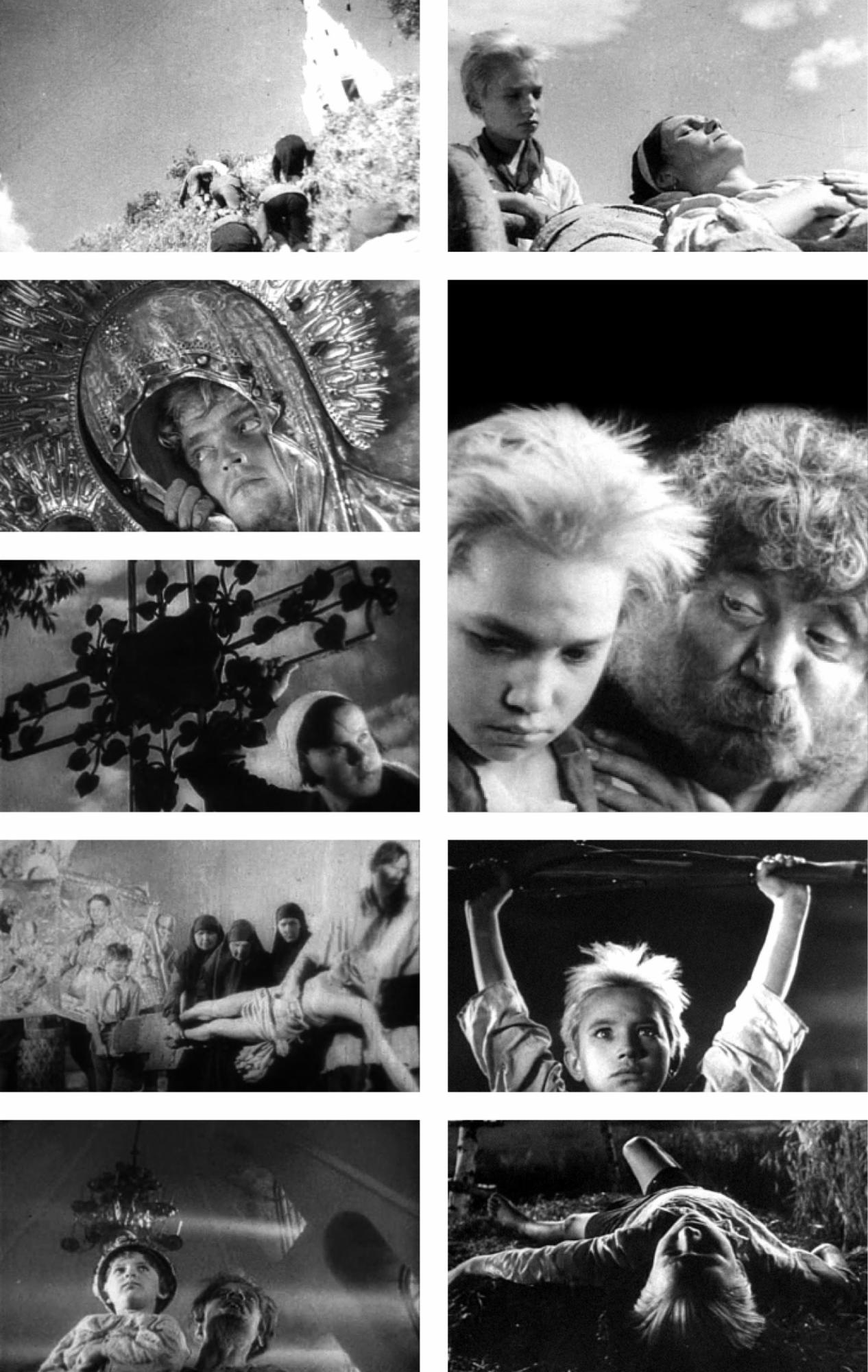 Быть может, образный ключ ко всему этому процессу — гениальная (и, увы, дошедшая до нас лишь в кадрах-срезках — не в силу ли своей грандиозной еретичности?) сцена «Разгром церкви» в «Бежином луге» Эйзенштейна. Там крестьяне-колхозники, ворвавшиеся в храм (они преследуют скрывшихся в нем убийц), начинают рушить-преобразовывать храмовый интерьер. Но впервые войдя в непосредственное соприкосновение, непосредственный контакт с сакральным пространством, они сами, не замечая того (в отличие от режиссера), начинают смотреться в нем персонажами Священного Писания: и ребенок в окладе иконы, и процессия несущих деревянное распятие, и бородатый гигант, рушащий царские врата, и младенец в царском венце, надетом набекрень. Им всем, тем самым, о чем они пока не подозревают, предстоит пройти путем этих персонажей и оплакать в финале отрока в пионерском галстуке, с нимбом пышных волос, пришедшего в мир, чтобы навсегда ценой собственной жизни прекратить в нем насилие.
