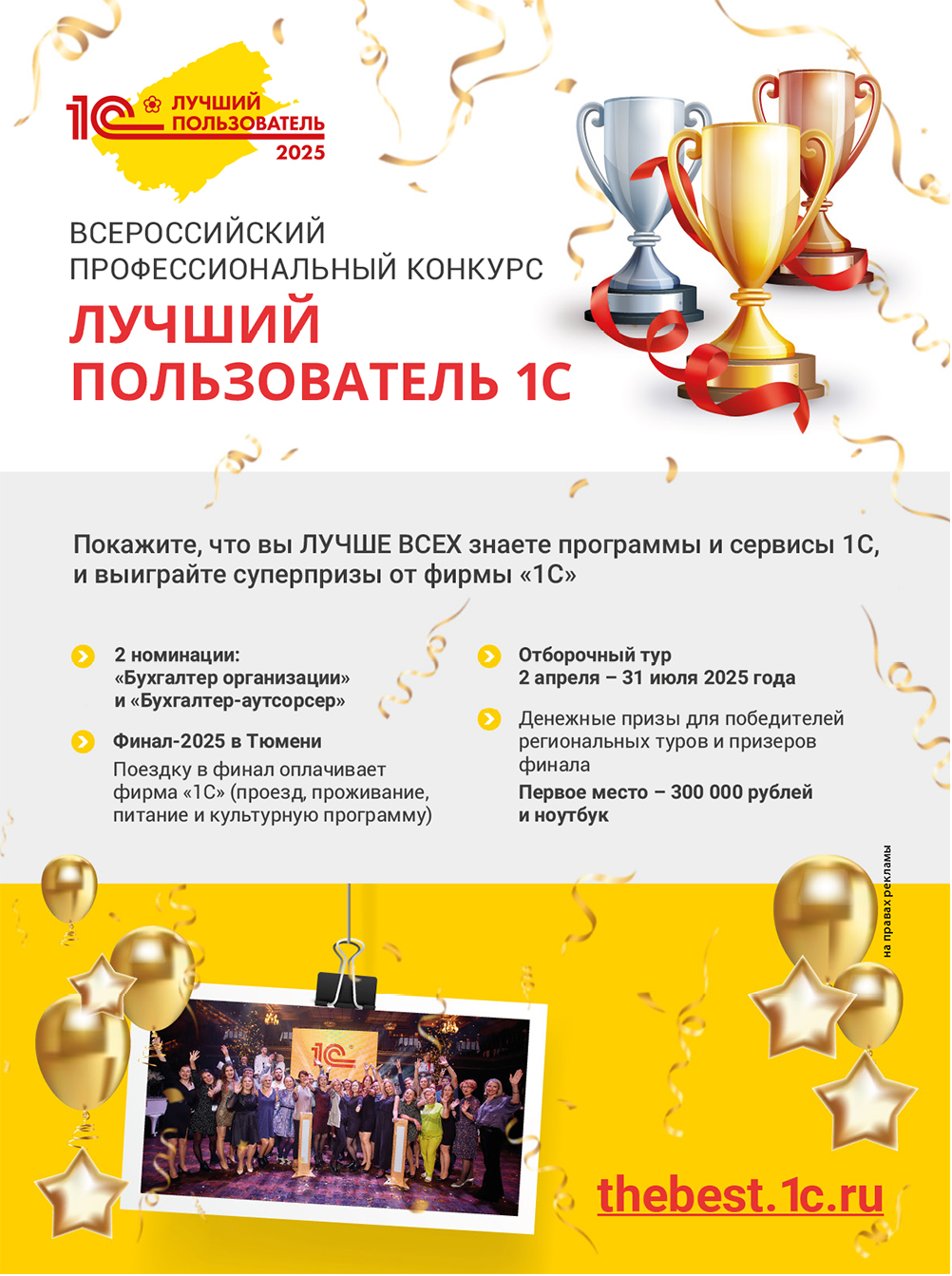 Фирма «1С» объявляет о старте 2 апреля 2025 года Всероссийского конкурса «Лучший пользователь 1С».