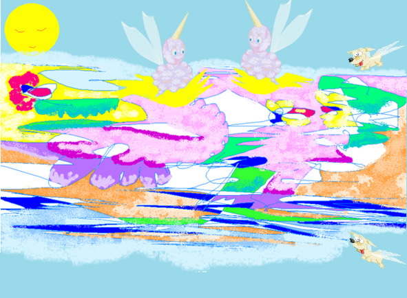 Вокруг игриво летали сверкающие единороги. Их сопровождали крылатые щенята, еле поспевая и часто махая крылышками. Казалось, мистические творения катят разноцветный сугроб к небесному светилу…