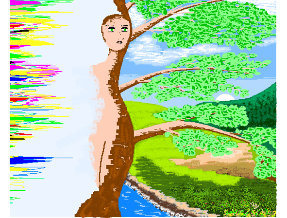 Появилась радуга — большая, сияющая, разноцветная…. Начиналась она от бурной речки и полусферой тянулась к ельнику, прячась за вечнозелёными пирамидами хвойной растительности. Верхушка её доставала солнышко, улыбающееся и ласкающее светом щедро одариваемых лучей.