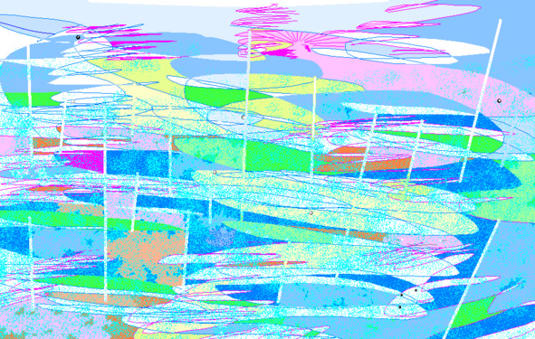 На звёздном небе появилась радуга, потом ещё, и ещё. Поочерёдно растворяясь, краски перемешивались в фантастические узоры и формы. А уплотняясь в светящиеся пучки, рождались разноцветные огоньки, медленно опускающиеся вниз.