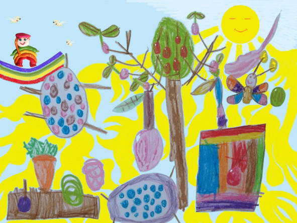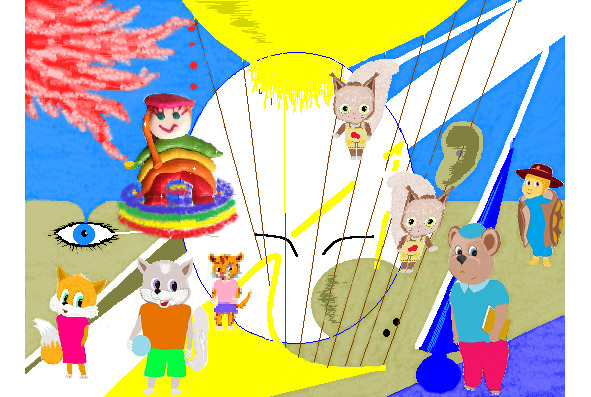 «Нам нравится радость…. радость цветов…. радостная дуга! Краски, карандаши, мелки!..» — принялись выкрикивать малыши особенное объяснение, представляя в воображении, каким образом создается семицветие.