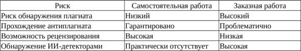 Таблица 2 — Сравнение рисков при самостоятельном написании и заказе ВКР