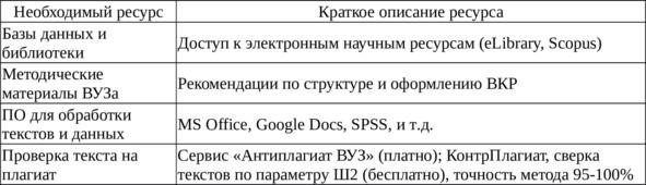 Таблица 3 — Минимально необходимые ресурсы для написания ВКР