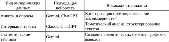 Таблица 6 — Применение ИИ в обработке эмпирических данных