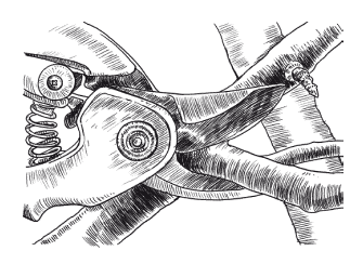 Безотказная работа секаторов зависит не только от остроты режущего лезвия, но и от состояния шарнирного соединения, которое обычно состоит из болта со стопорной гайкой. Зазор между лезвиями секатора должен быть минимальным, но вместе с тем их ход – не слишком тугим. За этим необходимо постоянно следить.