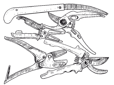 Секаторы: а – для тонких веток; б – для рубки веток