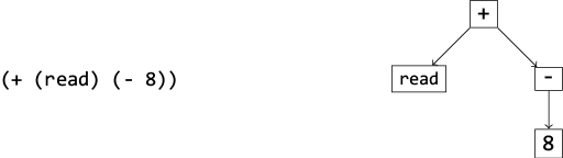 (Prim ’+ ((Prim ’read ()) (Prim ’- ((Int 8)))))