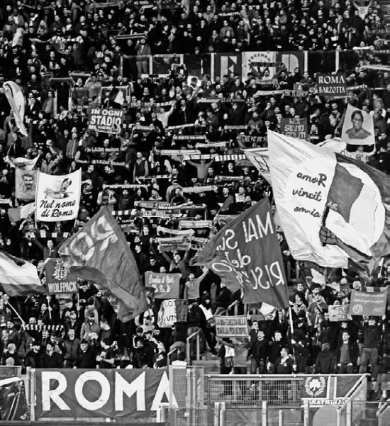 Ультрас на трибуне ФК «Рома».