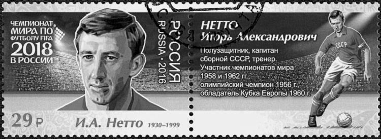 Игорь Нетто. Почтовая марка, посвящённая ЧМ-2018.