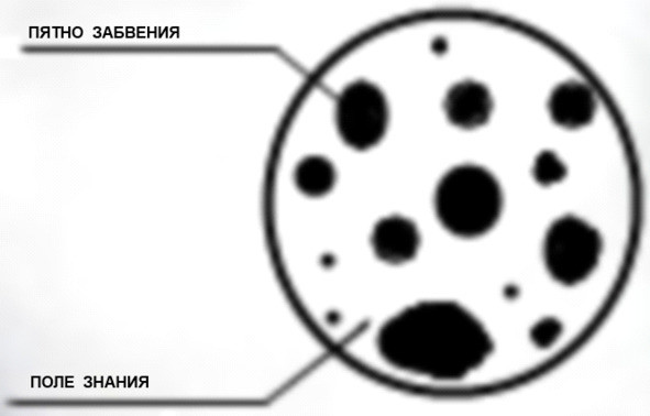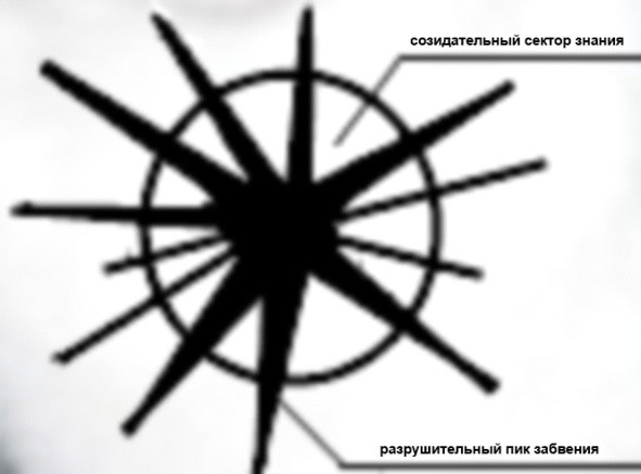 Так называемые «пики разрушения» выглядят на внешней схеме, как «пятна забвения», которые в зависимости от социально-энергетических формирований, полей деятельности, а так же других формирующих свойств разумных живых существ, могут принимать любую плоскостную форму (знаков, символов и прочего), создавая при этом всевозможные картинки восприятия…