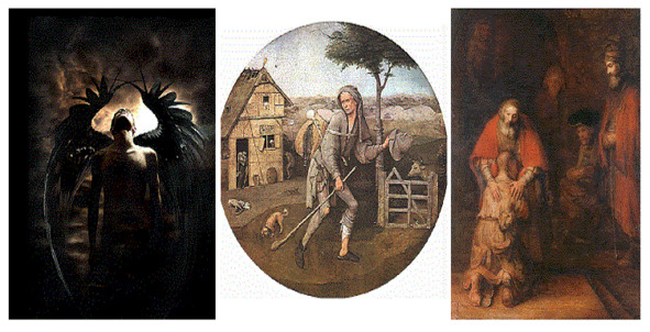 — У некоторого человека было два сына; и сказал младший из них отцу: отче! дай мне следующую часть имения. И отец разделил им имение. По прошествии немногих дней младший сын, собрав всё, пошел в дальнюю сторону и там расточил имение свое, живя распутно. Когда же он прожил всё, настал великий голод в той стране, и он начал нуждаться; и пошел, пристал к одному из жителей страны той, а тот послал его на поля свои пасти свиней; и он рад был наполнить чрево свое рожками, которые ели свиньи, но никто не давал ему. Придя же в себя, сказал: сколько наемников у отца моего избыточествуют хлебом, а я умираю от голода; встану, пойду к отцу моему и скажу ему: отче! я согрешил против неба и пред тобою и уже недостоин называться сыном твоим; прими меня в число наемников твоих…