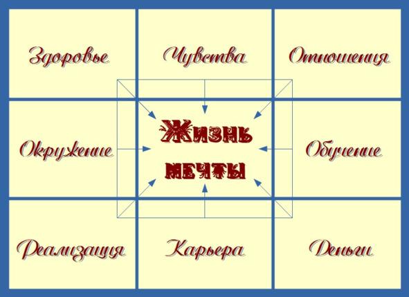 Для меня смысл работы над ключевыми сферами жизни заключается в том, что каждая сфера жизни существует не сама по себе, в отрыве от целого, а дополняет остальные сферы жизни, и поэтому делая любой шаг в любой из этих сфер, я в целом приближаюсь к одному и тому же желаемому результату. Неважно, что конкретно я сейчас делаю: занимаюсь физкультуро