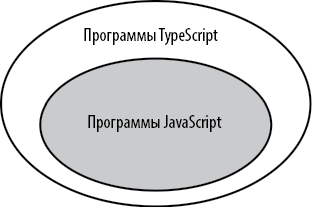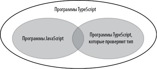 Рис. 1.2. Все программы JavaScript являются TypeScript-программами, но лишь некоторые программы JavaScript (и TypeScript) проходят проверку типов