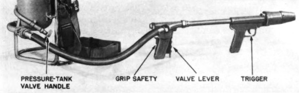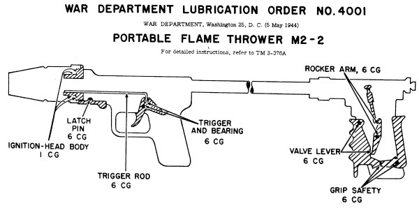 n. (Added). Hands and tools must be free of oil or grease when charging or servicing flame thrower pressure systems.