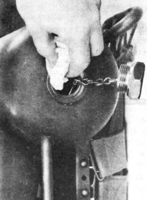 (3) Carry wrench with large enough opening to unscrew filling plugs from tops of fuel tanks and to tighten plugs after filling.