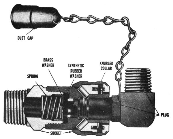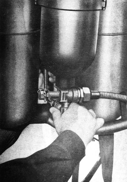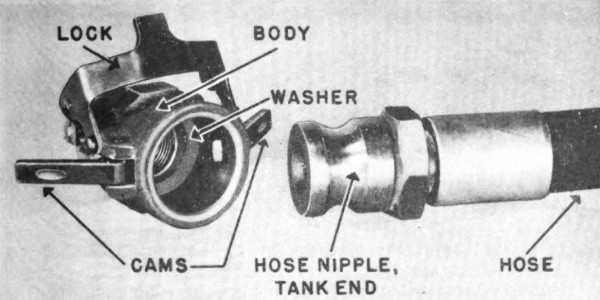 a. Place the new * * * to 2 minutes. Slight pressure sometimes builds up in the fuel tanks, even though the pressure-tank valve has not been opened, and causes some overflow of fuel when the coupling plug is removed. This pressure may be relieved by—
