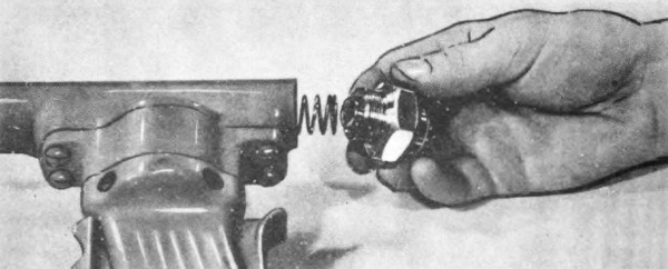 m. (Added). New gun may be received with valve spring removed from barrel and valve assembly. Spring comes tied to barrel. This is done to prevent strain on valve diaphragm assembly caused by pressure of spring in gun during storage and shipment. When weapon is being prepared for operation, spring must be untied from barrel and installed in gun, as described in paragraph 75.